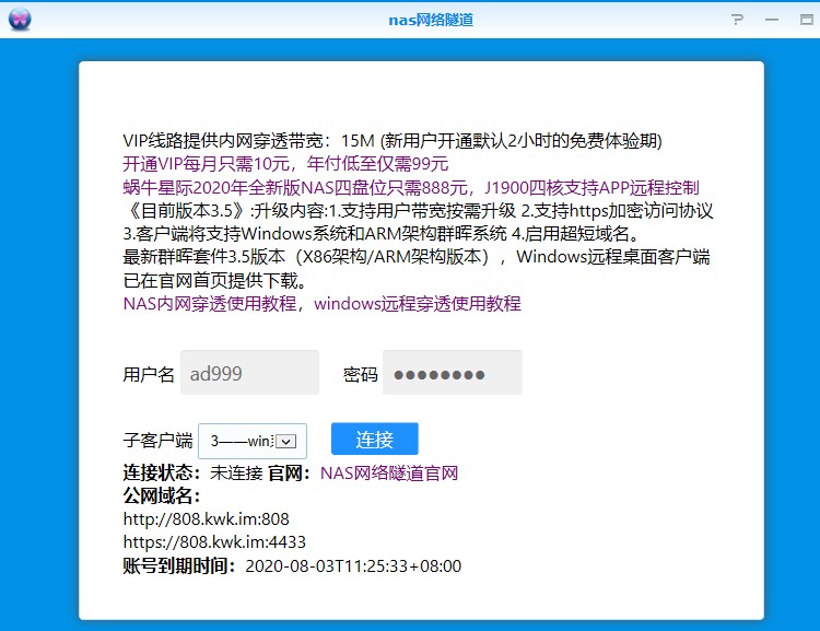你好,我想请问一下,我远程差不多半年都连不上NAS了。 NAS网络隧道已链接 账户显示正常,客户端状态显示在线 手动配置DNS服务器也改成223.5.5.5和223.6.6.6了 但是远程访问就是不行。 |